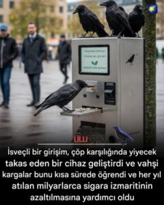 İsveç’te yabani kargalar sigara izmaritlerinin temizlenmesine yardımcı oluyor